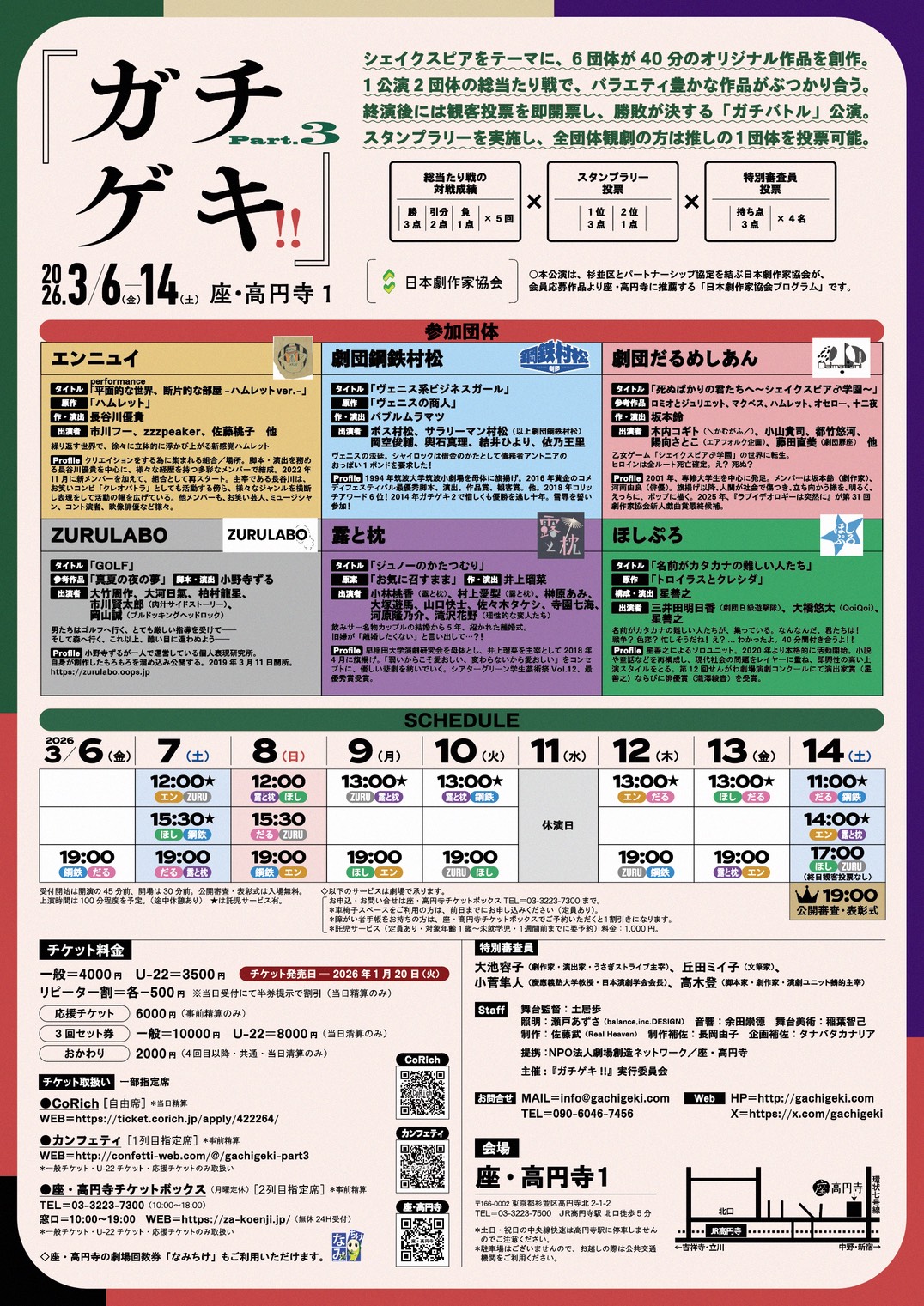 3月14日(土)11:00★,14:00★,17:00 (終日観客投票なし)。19:00公開審査・表彰式